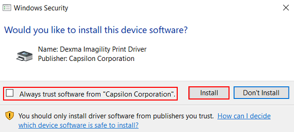 Uncheck Always trust software from Capsilon Corporation and click Install.