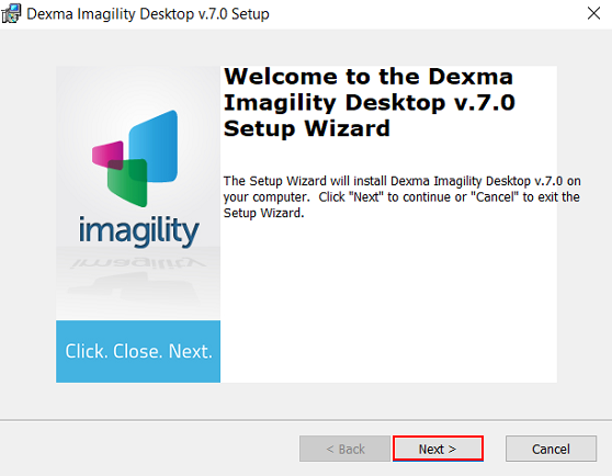 Double click Dexma_Imagility_Desktop_v.7.0.1.42.msi