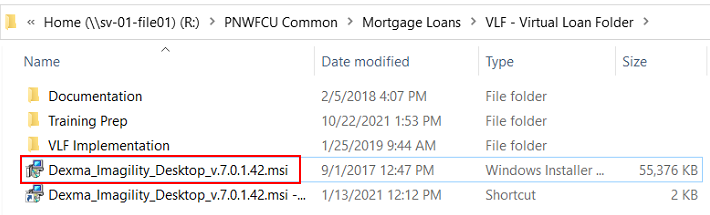 Installer located here: R:\PNWFCU Common\Mortgage Loans\VLF - Virtual Loan Folder