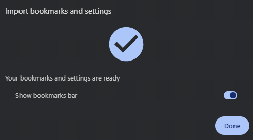 Import complete. Click Done.
