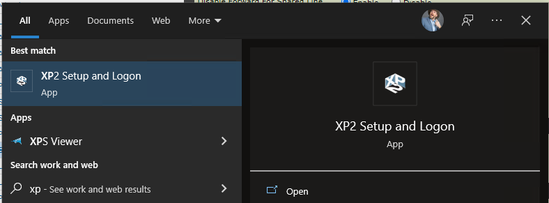 Open the XP2 Setup and Logon screen. You can open from the Start menu by searching XP2 or if it is already running, you can click on the icon in the System Tray in the lower right corner of your screen.