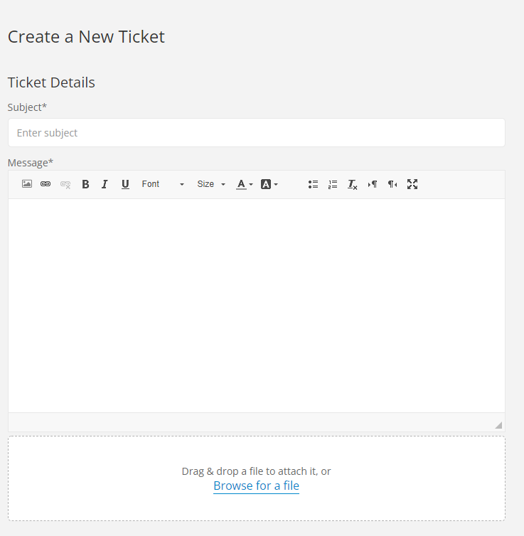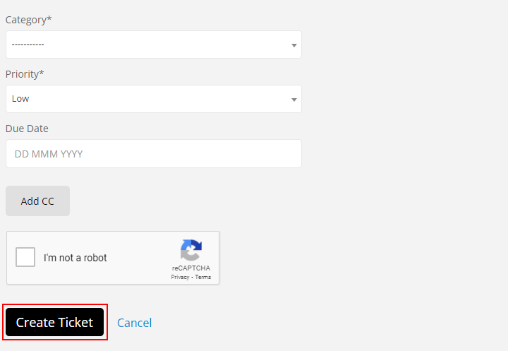 - Within the HappyFox portal click Submit Ticket, enter the ticket details, then click Create Ticket.