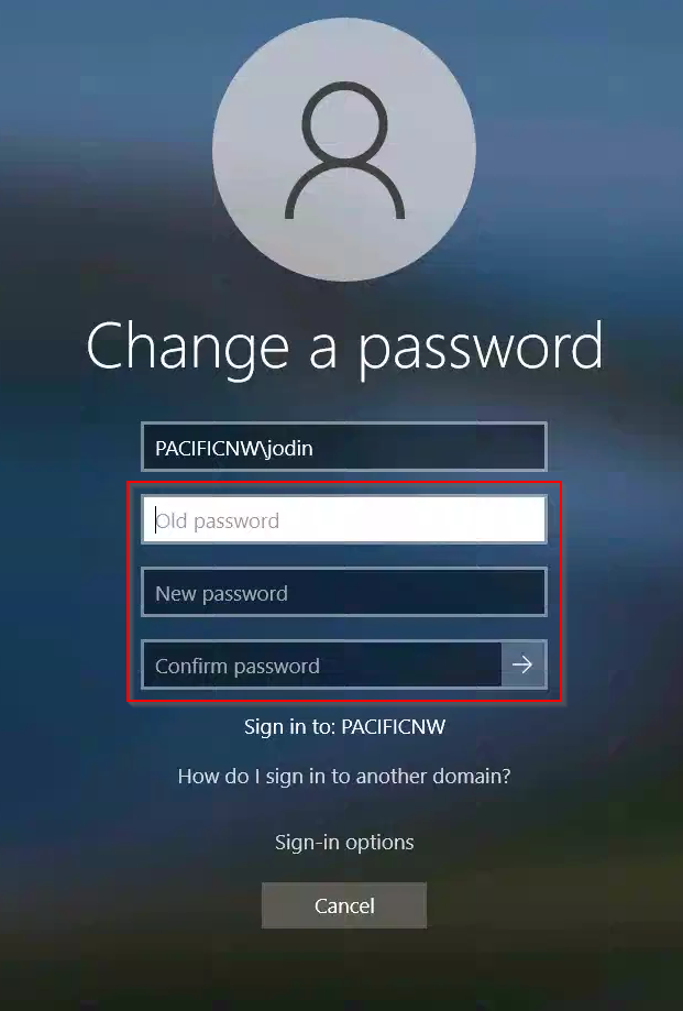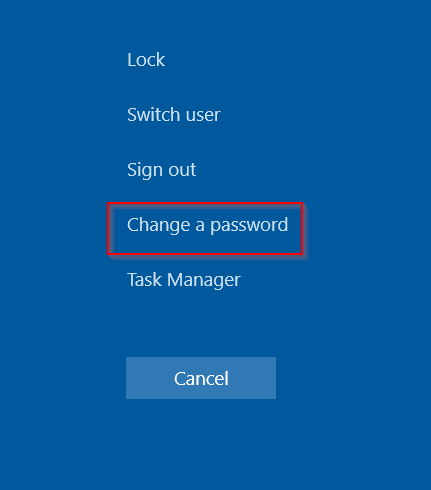 To change your password, click CRTL + ALT + DELETE then click “Change a password”.