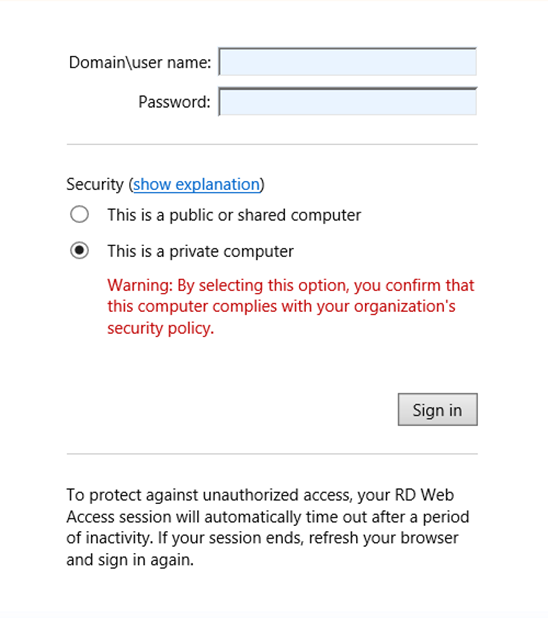 2. Browse to https://oncore.unitedsolutions.coop. Select the radio button for Private Computer and type in your USC credentials. Username uses the following format SGC\firstname.lastname. Please notice that you must append “SGC” to the username.