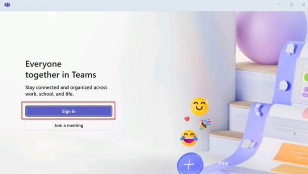 Teams Setup Jodi Nantharaj May 19, 2025 2 Signing into Teams Enter Teams in the search bar to launch Teams. Click Sign in. Enter credentials, then click Next. Uncheck “Allow my organization to manage my device”. Click “No, this app only”. Click Yes.