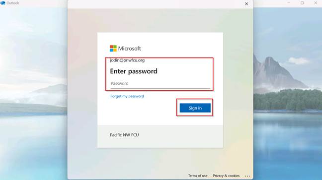 Signing into Oulook