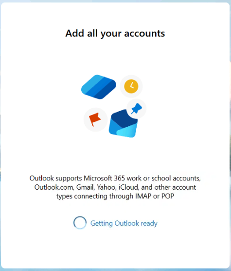 Outlook will add your account and open your inbox.