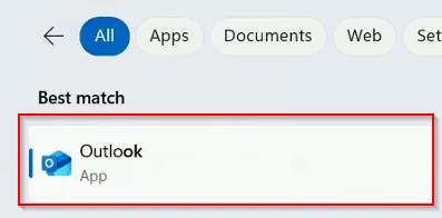 Type in Outlook in the search bar to launch Outlook.